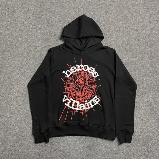 SP5DER x METRO BOOMIN HEROS AND VILLAINS HOODIE BLACK